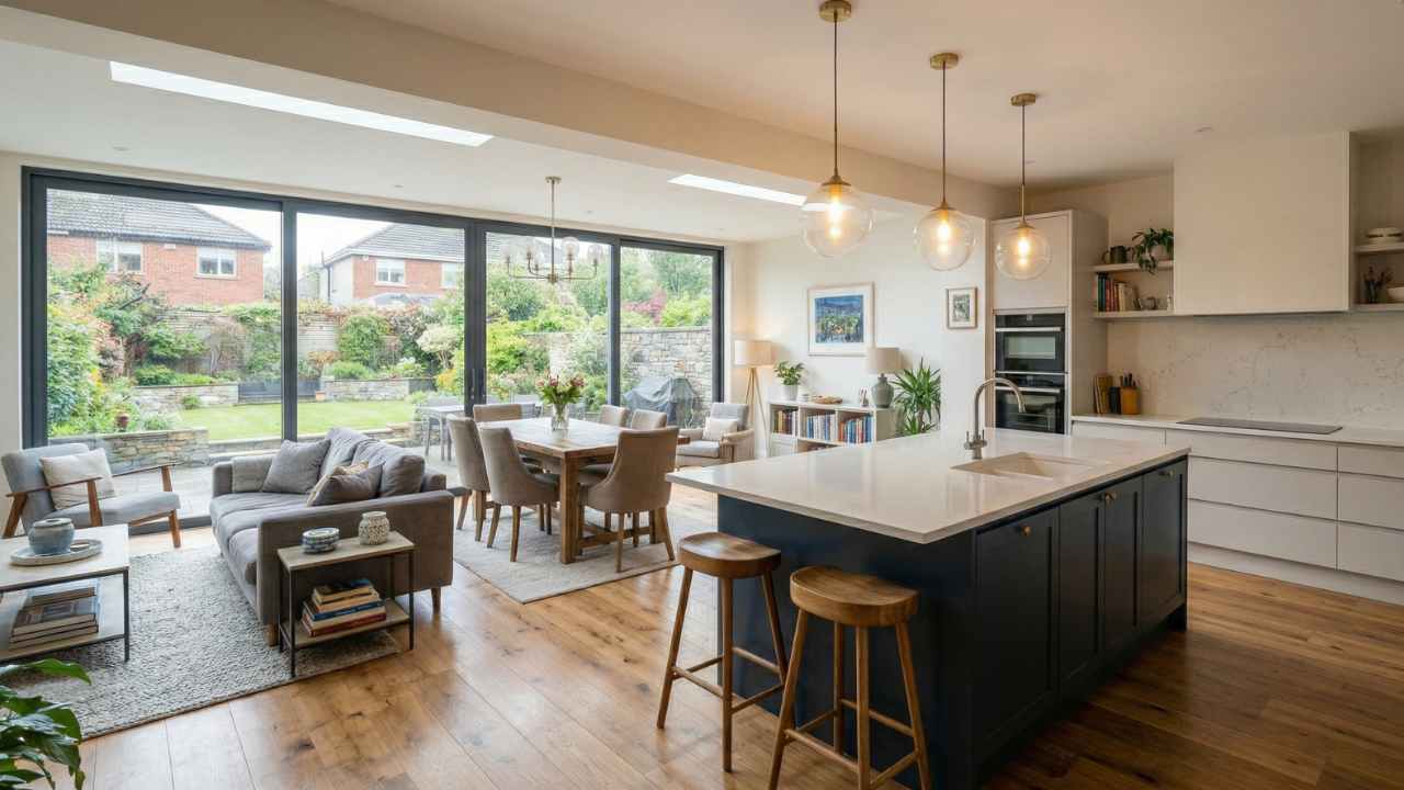 Open-plan layouts are hugely popular in Irish extensions, and for good reason. They make smaller footprints feel generous and let natural light travel further into the house. But open-plan doesn't mean one giant room with no definition. Think about zones: a cooking zone, a dining zone, a sitting zone. You can separate these with furniture placement, changes in flooring, or even a slight level change.